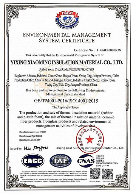環(huán)境管理體系認證證書 中英文