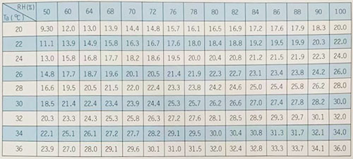 *上述露點溫度表中未列出的露點溫度,可用插值法求得或查空氣焓濕圖。
