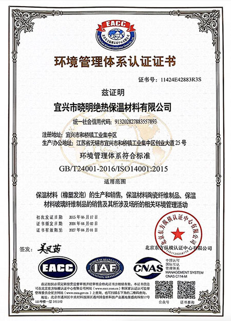 環(huán)境管理體系認證證書 中英文